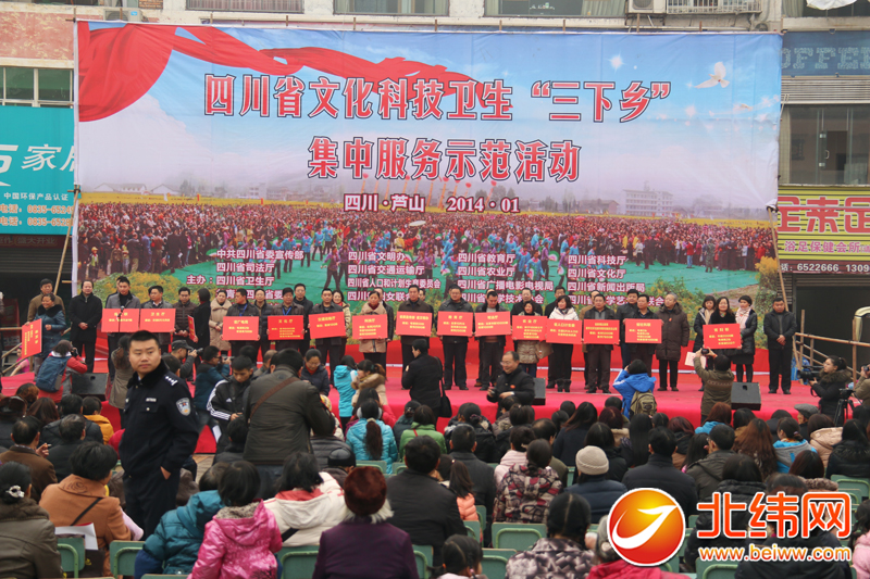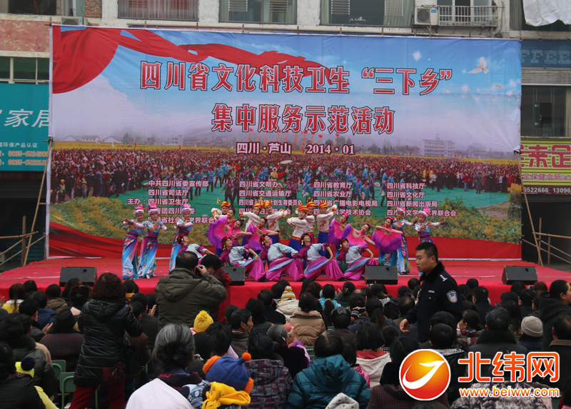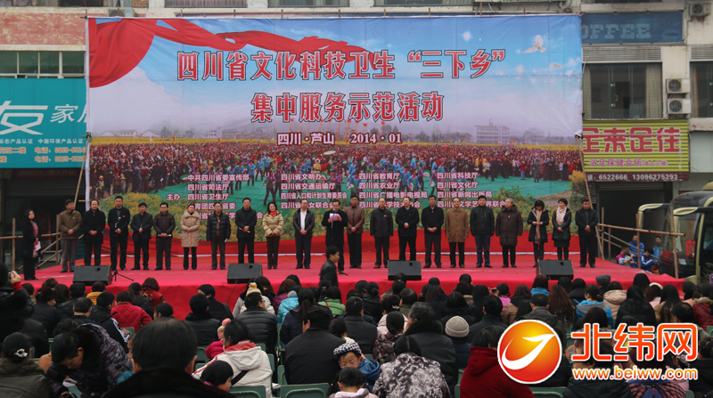 北纬网讯 (记者白雨锶)今(15)日上午,四川省2014年文化科技卫生“三下乡”活动在芦山启动,同时,第十六届“列车文化·同心艺术团”送文化首场慰问演出活动也在芦山开演。