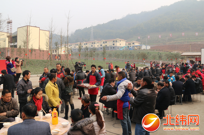 北纬网讯 (记者 白雨锶)在春节即将到来之际,今(28)日,芦山县芦阳镇黎明新村聚居点和飞仙关镇凤凰新村聚居点的四十多户受灾群众告别临时过渡房正式入住灾后重建的新房,他们在新房楼旁的院坝里,摆起了几十桌坝坝宴,一起欢庆乔迁迎新年。