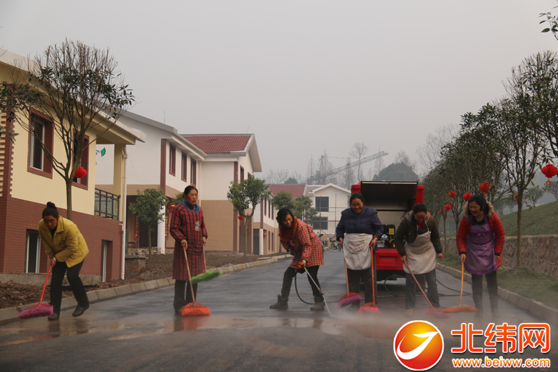 在黎明村聚集点,一排排样式新潮、宽敞明亮的新居沿柏油路一侧排开,一些刚搬进新家的灾区群众,正在清扫通往每家每户柏油路,道路两旁的树枝上挂着小小的灯笼,每一栋新房的门前都挂上了大红灯笼,浓浓的年味扑面而来。