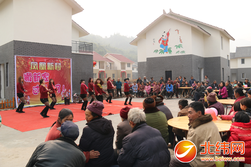 同一时间,飞仙关镇凤凰村的二十多户村民也迎来乔迁之喜。当地群众用载歌载舞的方式庆祝搬新家,过新年。据介绍,凤凰新村规划建设119户,目前52户达到入住条件,28日当天群众入住20多户。今后该村将以林竹产业、茶叶产业和优质葡萄产业为主要发展方向。