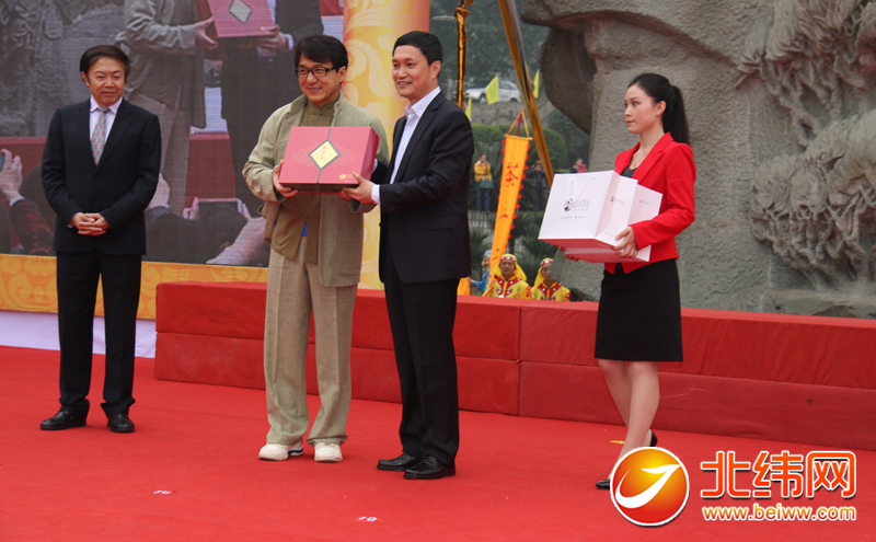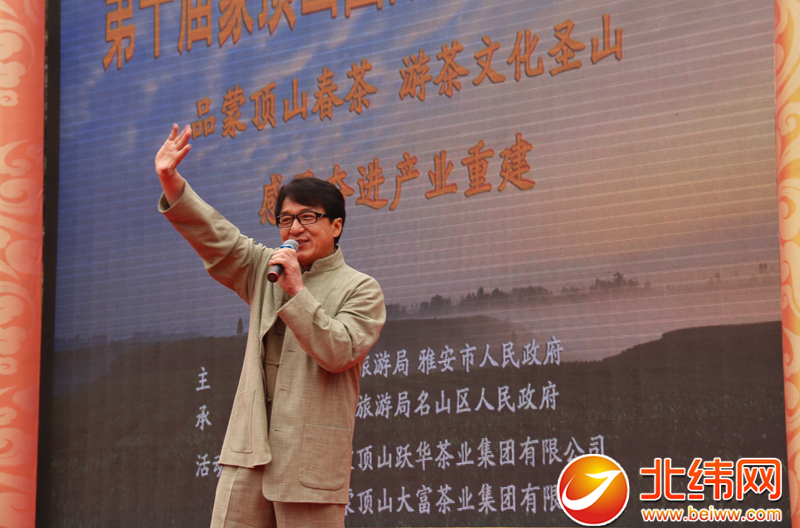 开幕式,成龙专程赶来,看望雅安茶农。名山区委托全国政协常委著名雕塑家画家袁熙坤,专门创作一副汇聚雅安人民感恩之情的作品赠送给成龙。成龙和袁熙坤先生在作品画像上签名并转送给雅安的茶农代表。