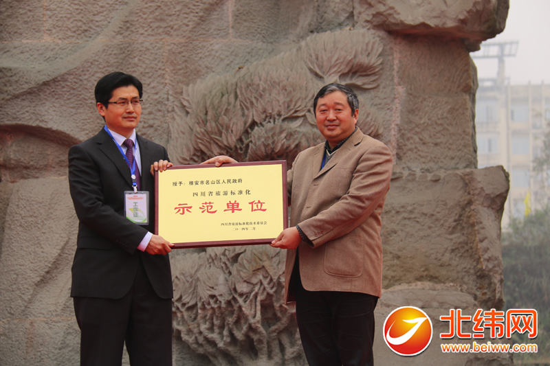 省农业厅、省工商局、省旅游局分别向名山区进行了“全国绿色食品原料(茶叶)标准化生产基地”授牌和“蒙山”、“蒙顶”全国驰名商标授牌以及“四川省旅游标准化示范县”授牌。