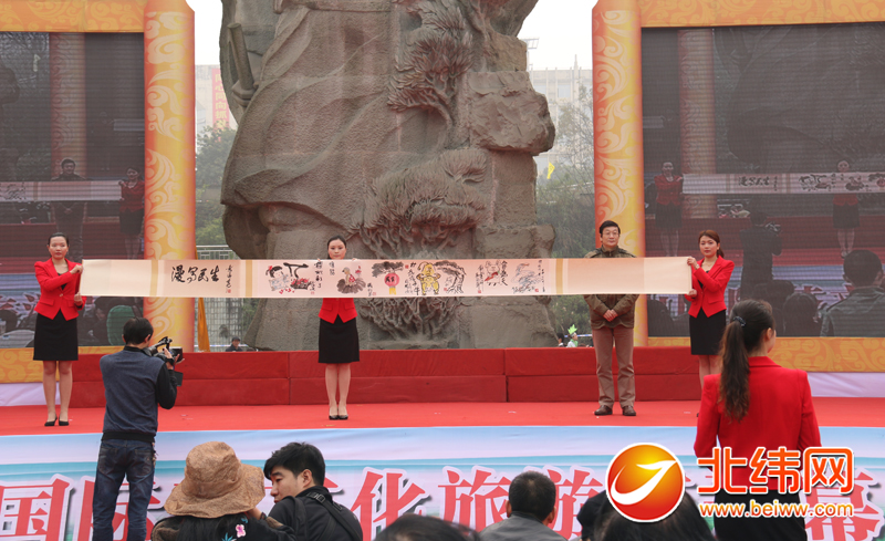中国美协徐鹏飞主任致辞并向名山区赠送祝福字画