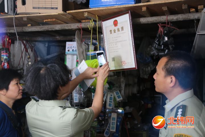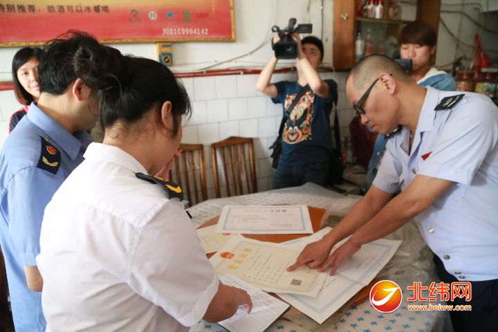 执法人员核查商户经营执照
